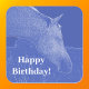 Got a horse-crazy friend or family member celebrating a birthday? Here is a striking, blue-toned image of a horse's head in profile—simple, elegant, and guaranteed to grab attention. The "Happy Birthday" message is front and centre, ready for you to personalize with a name or short message.
