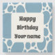 Cool blue pattern and the text; Happy Birthday. To customize, click personalize and change the name to your liking.