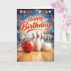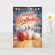 A birthday card with a bowling theme.