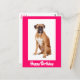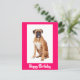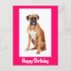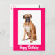 Aww....who can resist the sweet face of a Boxer puppy dog? This fun pink fuchsia Birthday card features a Boxer pup against a crisp white background. She is ready to help you send Birthday greetings to your family and friends.