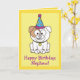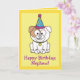 A cartoon bulldog for a nephew is dressed for a birthday party in this colourful, happy birthday card. For matching items type "penguincornerstore bulldog" into the Zazzle search bar.