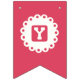 "HAPPY BIRTHDAY" bunting flags in hot pink with a white circular label in the centre with the lettering. By Monkey Business Graphic Design, 2020. The perfect accent to all your birthday parties.