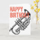 Happy Birthday card depicting a Cornet blasting out Greetings.