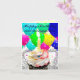 Colourful balloons and cup cake with a candle birthday card. You can personalize this card by adding their name to this card.