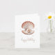 A delicate birthday greeting card featuring a watercolor-style illustration of a single, beige scallop seashell gently opened to reveal a luminous pearl nestled inside. The text "Happy Birthday" is in a graceful, handwritten-style script in a soft grey colour placed elegantly below the shell, creating a sense of understated elegance and heartfelt wishes, perfect for a close friend or family member.
