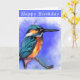 Happy Birthday - Beautiful Kingfisher Bird - Migned Watercolor Art Painting Exotic Blue Fisher - Add Your Text / Name / Picture