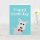 Cute Turquoise Happy Birthday Card with a White Highland Terrier Westie Dog