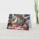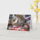 Happy Birthday cat on red and black photograph. Available as greeting cards and notecards. Customize with your own message. Personalize by adding a name.