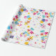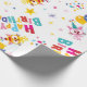 A Colourful Happy Birthday Typography Wrapping Paper Of Colourful Print Lettering, Balloons, Party Cats And Owls