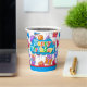 A Colorful Happy Birthday Paper Cup In A Celebration Style With Balloons, Hats And Gifts For A Kids Party