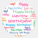 These fun stickers are perfect for sealing birthday cards, or for decorating gifts! The phrase "Happy birthday!" appears in many bright, cheerful colours and fonts, forming a word cloud. Don't forget the matching card!
