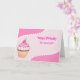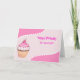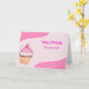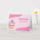 Send the birthday girl a sweet birthday card featuring a cute pink cupcake graphic on a light pink background with a darker pink curved ends with white polka dots. Customize these birthday cards with the birthday girl's name and special message.