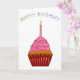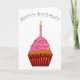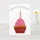 Happy Birthday Cupcake with One Candle Illustration Greeting Card