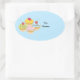 This peel and stick gift tag has a blue background colour along with multicolored cupcakes and a happy birthday written on them.
