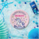 Adorable magical paper plates to celebrate your birthday. A pink plate featuring a cute cartoon drawn unicorn. She has a colourful mane and tail in pastel blues, pinks and purples, a yellow horn on the crown of her head, a white body and purple hooves. She is standing on purple grass with purple bushes in the background and surrounded by colourful stars. In curved purple text at the top of the plate are the words 'Happy Birthday' and below this in pink text is a template to add your name to personalize this cute addition to your party celebrations.