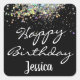 Happy Birthday Custom Name Rainbow Glitter Square Sticker