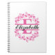 Happy Birthday Customize writing notebook with flowers monogram design in pink colour. Perfect gift for any birthday, you can customize any name or text on this notebook. Like Emma, Evelyn, Ella, Elizabeth, and more...