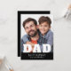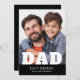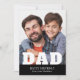 Happy Birthday Dad Modern Personalized Photo Greeting Cards. This modern design features a "DAD" white text overlay on your favourite photo on a black background with the editable text "Happy Birthday (your text and name)" is written in modern typography. Personalize the text by editing the text box.