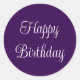 Happy Birthday Dark Purple & White Elegant Script Classic Round Sticker