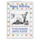Darts player has extra long darts, giving him an unfair advantage. Personalize with your choice of wording and inside message. Birthday card for a darts player.