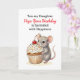An adorable birthday card for a daughter featuring an illustration of a cute little mouse carrying a vanilla cupcake with sprinkles and a cherry on top! All text on this card can be edited in the personalize area.