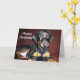 Dites le "joyeux anniversaire" avec cette carte adorable, comportant un chiot mignon de Pinscher de dobermann posant pour l'appareil-photo. Le texte intérieur peut être gardé comme est, ou être personnalisé par vous pour cela le contact supplémentaire. Photo par le concepteur.