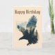 Custom birthday card featuring majestic flying eagle and mountain forest with "Happy Birthday" in vintage serif typography. Coloured beige interior and back. Also available for Instant Download to easily share with friends and family.