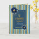 Celebrate her special day in style with our personalized Blue Multiple Striped Gradient Background Happy Birthday Card. Featuring a stunning blue velvet flower and accents of gold dust. This card is a beautiful way to express your wishes for her birthday. Text fields allow for personal customization, making it more special by personalizing it with her name, a heartfelt message, a closing salutation, and well-wishers name(s).