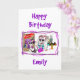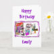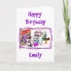 Happy Birthday - Emily -Purple text and cartoon of girls going shopping.