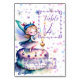 This design has been expressly created for girls birthday. It's a lovely illustration of a pretty little fairy upon a birthday cake trying to adjust the candles on it.