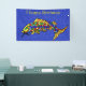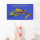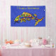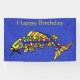 This cloth banner is a vibrant blue colour with tiny white sparkle like flecks and a fancy abstract fish with bright colourful scales. Customize the Happy Birthday text with the template.