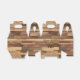 Your custom text highlights this faux wooden favour box with a pretty laurel twig.