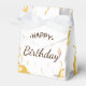This beautiful Happy Birthday favour box is the perfect way to celebrate your special day. Made from sturdy cardboard, this box is sure to hold your favourite treats and goodies. The bright, cheerful design is sure to bring a smile to everyone's face. Happy Birthday decorated text, with flying gold and silver balloons, golden shiny confetti decoration.