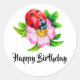 Happy Birthday Floral Ladybug Classic Round Sticker