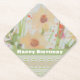 Happy birthday diamond shaped coaster with many other shapes to choose from including hearts, scalloped and more, the pastel green stripe can be changed to any colour, and text can be personalized, or text is removable.