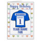 Birthday card for a football fan. Football fan shirt in blue. Personalise with your own details and message. Greetings card for a football fan.