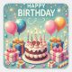 Happy Birthday for Kids - Colourful Balloons Cake Square Sticker