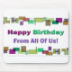This Happy Birthday From All Of Us Bright and Colourful Squares Mousepad makes a great business birthday gift and it also makes a great birthday gift for friends and family.