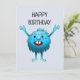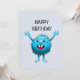 The little blue creature says happy birthday.