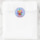 Happy Birthday, funny balloons colourful design with red circle frame.
