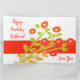 Accented with red flowered designer girlfriend birthday card, personalize text inside and out to suit any special occasion , colours are orange, pink, and reds, the white background or red orange centre stripe can be switched to your favourite colour.