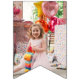 These girly white and pink bunting flags features photos of the birthday girl and a happy birthday message. Change the text and photos by clicking the personalize button.