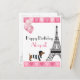 Happy Birthday Glitter Pink Heart Eiffel Tower Dog Postcard