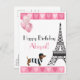 This chic Paris design features the Eiffel tower with a dachshund and glitter pink balloons with glitter pink heart borders. Easily personalize this Happy Birthday card with a name, address and birthday greeting in stylish black and pink text.