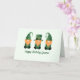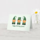This is a fun illustration of garden gnomes styled for St. Patrick's day. They feature four leaf clovers and a bright orange beard.