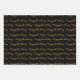 Happy Birthday Gold and Black Pattern Wrapping Paper Sheet