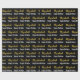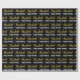 The wrapping paper is black. It has a text pattern for the recipient's name in a faux gold script and the phrase Happy Birthday. The name (Shown: Elizabeth) appears in an elegant faux (not foil) gold script. The other text is white. All of the text can be edited.