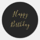 Happy Birthday Golden Yellow Custom Text Black Classic Round Sticker
