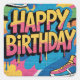 Celebrate in style with this vibrant "Happy Birthday" graffiti wall, bursting with bold colors and dripping paint effects. Featuring stylish sneakers in pink, blue, and yellow, this energetic street art design is perfect for hip-hop themed parties, urban celebrations, or anyone who loves dynamic, colorful esthetics.