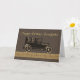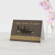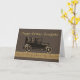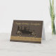 Very masculine in tones of brown and bronze, this card shows a classic sedan with running boards, probably from the twenties or thirties. It has a rich gold filigree border and lettering. A stylish card for the men in your life.